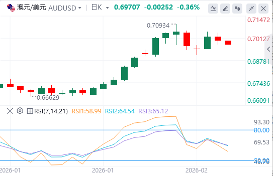 澳元兑美元汇率可能目标为0.7094,这是自2023年2月(1月29日记录)以来的最高水平。若跌破该水平,将支持该货币对测试约0.7250附近的上行通道边界。下行方面,主要支撑位于通道下限约0.6990,紧接着是九天指数移动平均线(EMA)0.6965。进一步下跌将使该货币对面临下行压力,试图在50日均线0.6767附近徘徊。