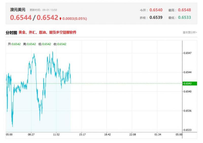周一亚盘,澳元/美元在周一亚洲早盘延续上涨,接近0.6540。交易者加大对美联储(Fd)在9月会议上降息的押注,这对美元(UD)造成压力。中国的制造业采购经理人指数(I)将在周一晚些时候公布。 市场基本面分析 中国国家统计局(NB)周日发布的数据表明,8月份制造业采购经理人指数(I)从7月份的49.3上升至49.4。该读