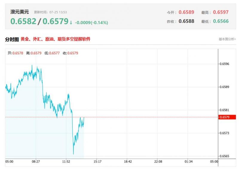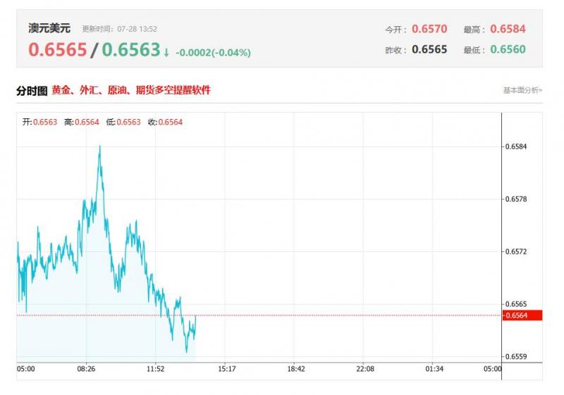 7月28日,周一欧市盘中,澳元/美元下跌,连续第三个交易日延续跌势。然而,在美国(U)和欧盟(U)宣布新建立的贸易协定后,澳元/美元货币对上涨。 交易员等待美国财政部长斯科特·贝森特与中国副总理何立峰定于周一在斯德哥尔摩举行的会晤的进一步进展。据《南华早报》(C)周日援引消息人士的话称,预计两国将把关税