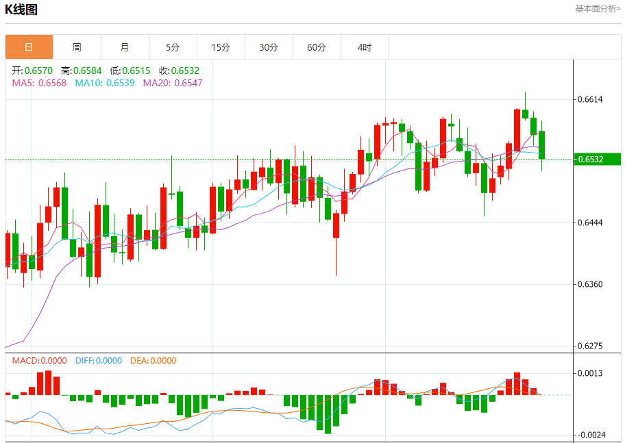 澳元兑美元今日汇率最高0.6582,最低0.6579,涨跌-0.0009,涨跌幅-0.14%。 市场基本面分析 澳洲联储预计,季度CI截尾值将达到0.6%左右,布洛克警告称,该数据有意外上行的风险。西太平洋银行(Wtac)首席经济学家Lucilli说:"我们还没有认定8月隔夜拆款利率将会下调。不过,我们确实认为这是最有可能的结