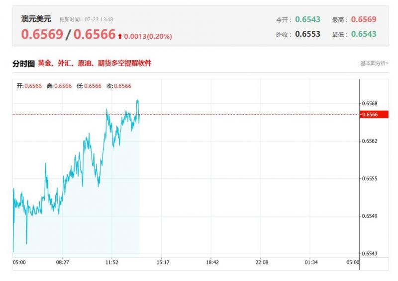 7月24日,周四亚市盘中,澳元/美元上涨,连续第五天延续涨势。在澳大利亚柔道银行采购经理人指数(I)初步数据发布后,澳元/美元货币对触及0.6600上方的八个月新高。焦点转向澳大利亚储备银行(RBA)行长的讲话。 柔道银行和标准普尔全球显示,澳大利亚7月份综合采购经理人指数从前值的51.6升至53.6,达到2022年4月以来