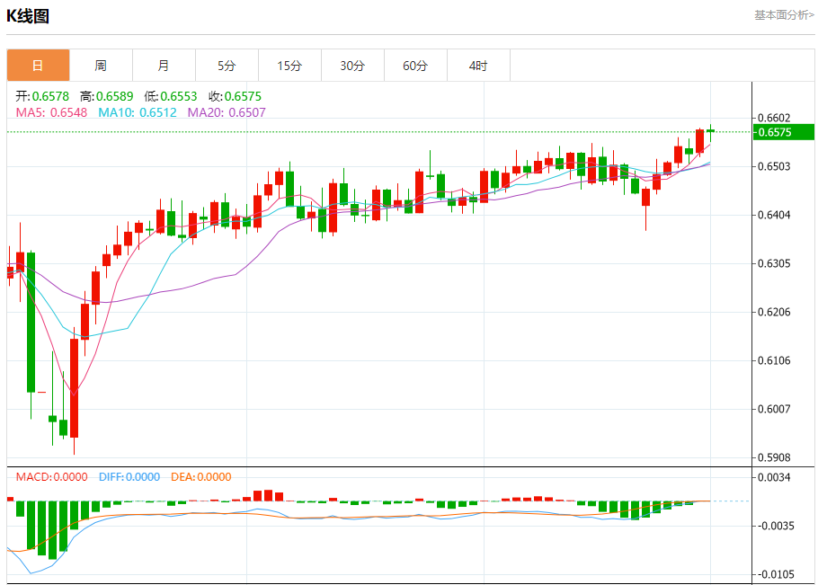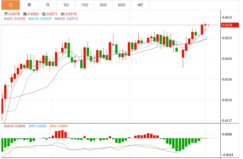 澳元兑美元今日汇率最高0.6570,最低0.6568,涨跌-0.0014,涨跌幅-0.22%。 市场基本面分析 最新数据显示,澳元正获得来自主要贸易伙伴制造业复苏的显著支撑。中国等关键出口市场的工业活动回暖,有效改善了市场风险偏好,为澳元创造了有利的外部环境。尽管澳大利亚财政部最新预测显示,受大宗商品价格回落