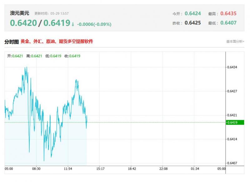 周三亚盘,澳元/美元徘徊于0.6431附近,日内下跌0.14%。澳大利亚等待4月份的CI数据,而美国则在FOC会议纪要中寻找美联储下一步行动的线索。货币政策的分歧和利率预期对该货币对的下一步走势至关重要。 市场基本面分析 澳元(AUD)在周二面临对美元(UD)的新压力,因为美元在美国经济数据喜忧参半和市场流动性复苏