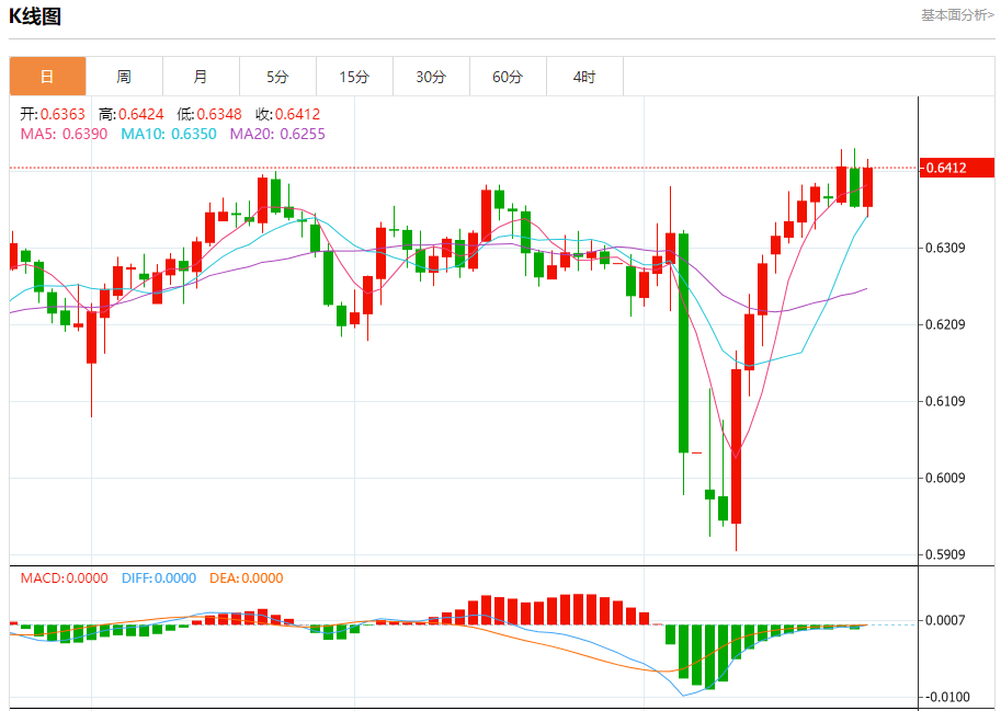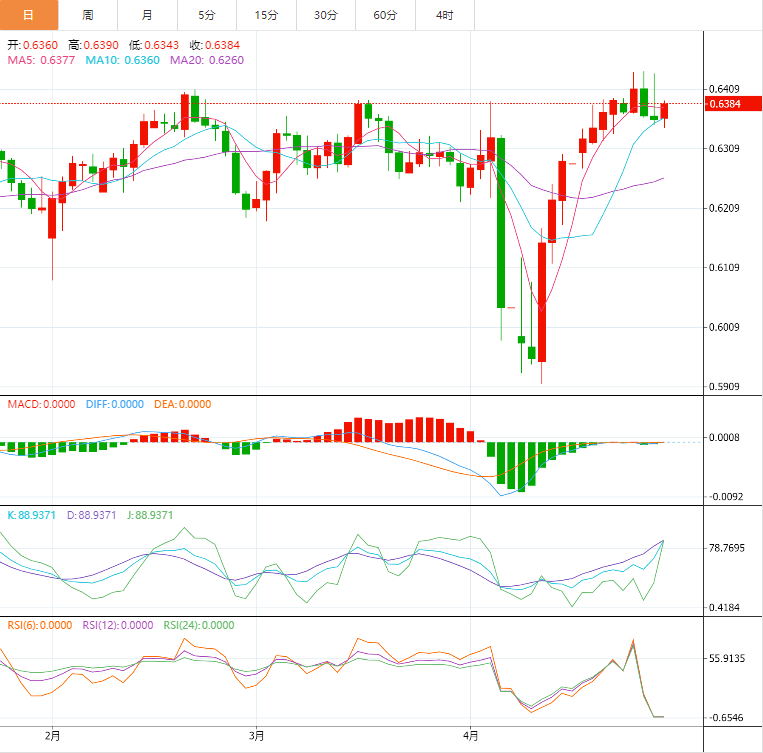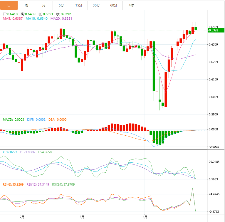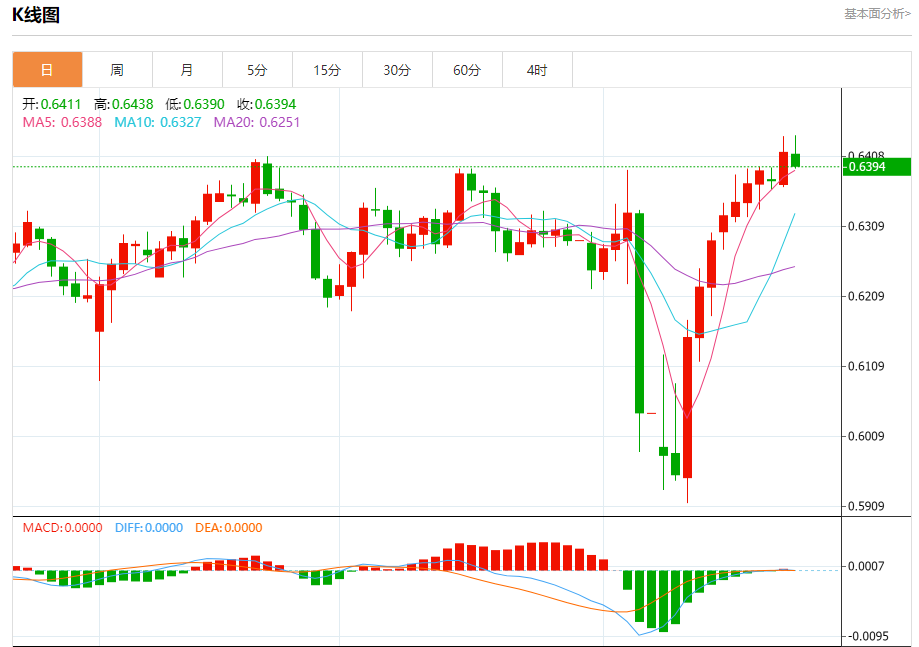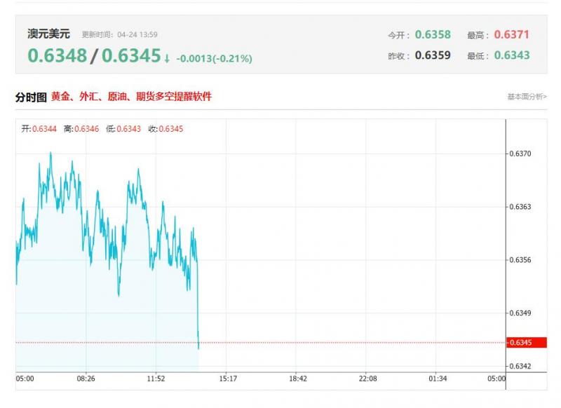截至2025年4月24日19时4分,澳元兑美元汇率为0.6385,较昨日收盘价上涨0.001660,涨幅达0.3947%。今日盘中,该货币对最高触及0.6390,最低下探至0.6343。近期澳元兑美元的走势波动,引发投资者广泛关注。 货币兑:澳元/美元 一、行情分析 从基本面来看,澳大利亚经济数据表现展现出一定韧性。虽然制造业I从