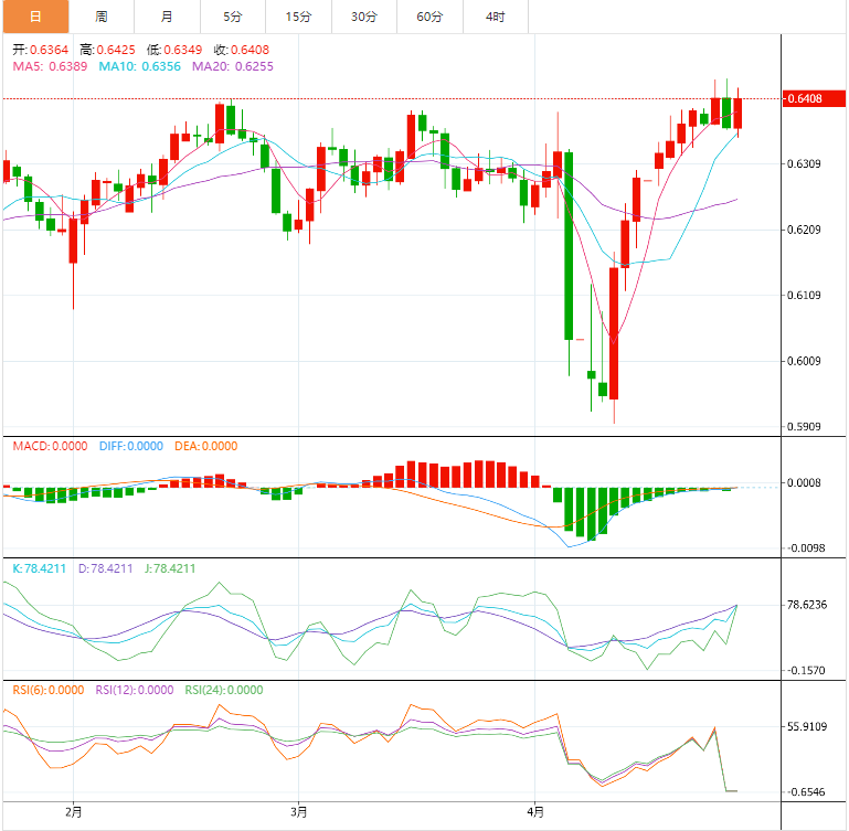 在2025年4月22日的外汇市场中,澳元兑美元汇率走势备受投资者关注。截至欧洲中部时间14:00,澳元兑美元汇率报0.6401,较昨日收盘价0.6416微幅下跌,但整体依然维持在近期高位附近。 货币兑:澳元/美元 一、行情分析 (一)美元指数走弱提供支撑 北京时间4月22日凌晨,美元指数纽约尾盘跌0.88%报98.35,