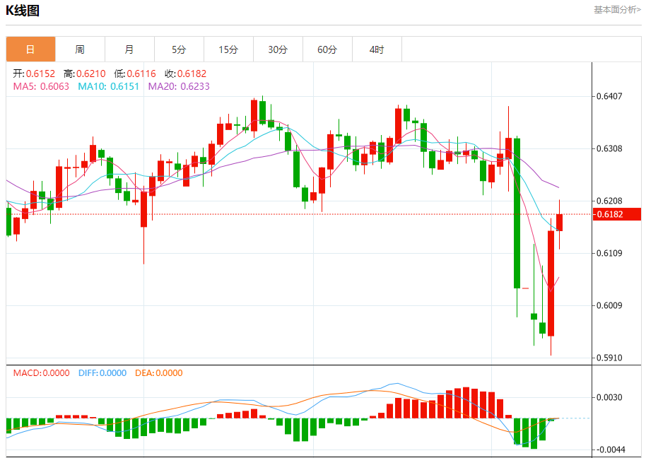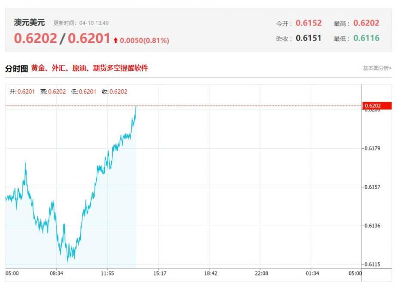 周四(4月10日),澳元兑美元汇率开盘报0.6148,截至发稿前,澳元/美元报0.6188,涨幅0.63%,盘中最高价0.6204,最低价0.6115。上一交易日,澳元兑美元收于0.6153,涨幅达3.24%,表现亮眼。这一涨势背后有着诸多驱动因素。从全球经济环境来看,市场风险偏好情绪有所改善,对澳元这一商品货币形成有力支撑。同时,大宗商