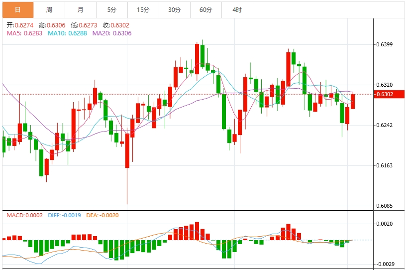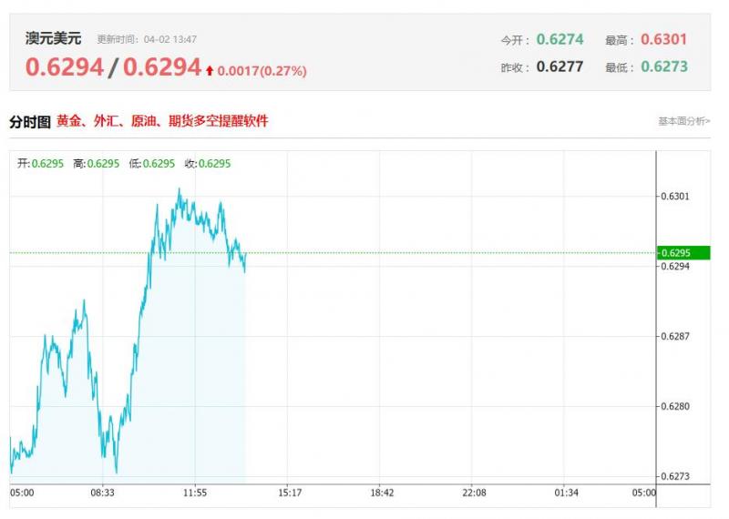 4月2日,周三欧市盘中,澳元/美元连续第二天吸引了一些后续买家,并从周一触及的近四周低点0.6220-0.6215区域附近进一步回升。这一势头将现货价格推高至欧洲时段上半段的每周新高,多头现在希望在0.6300整数关口之外建立势头。 澳元(AUD)继续受到澳大利亚储备银行(RBA)不那么鸽派立场的支持,称通胀可持续地恢复到