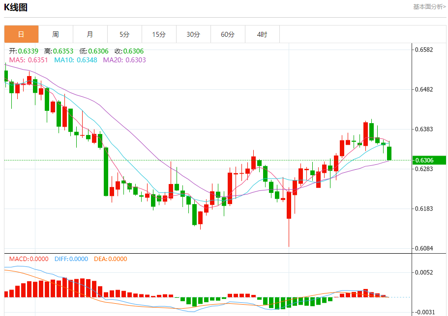 澳元兑美元今日汇率最高0.6290,最低0.6289,涨跌-0.0015,涨跌幅-0.24%。 市场基本面分析 澳大利亚去年第四季度商业投资意外下降,主要由于矿业和建筑行业的回落抵消了数据中心行业的增长。根据澳大利亚统计局(AB)最新数据显示,第四季度私人资本支出环比下降0.2%,远低于市场预期的0.8%增长,并与上一