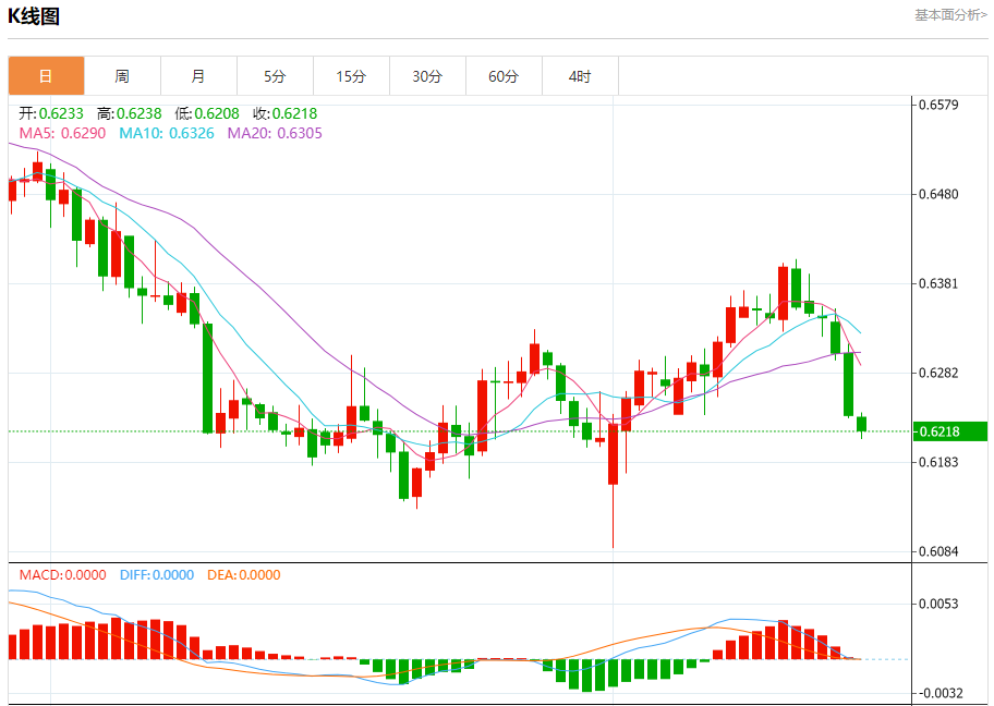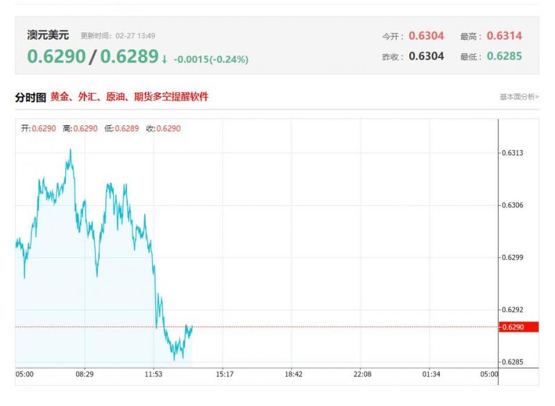 2月27日,周四欧市初盘,周四,澳元/美元连续第五天下跌。尽管澳大利亚私人资本支出数据令人失望,澳元/美元小幅走高,该数据在2024年第四季度意外环比收缩0.2%,低于市场预期的0.8%的增长。这是继上一季度向上修正1.6%的增长率之后的又一次增长。 澳大利亚储备银行副行长安德鲁·豪瑟(AndrwHaur)周四表示,他预计会