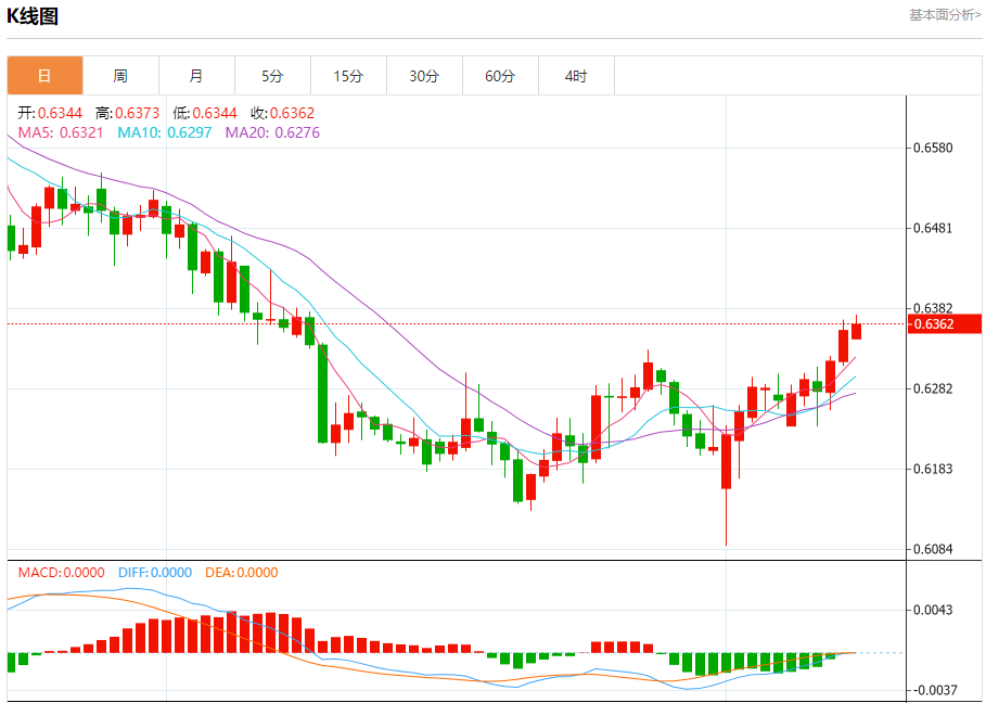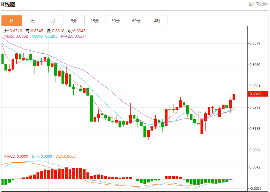 澳元兑美元今日汇率最高0.6357,最低0.6356,涨跌0.0001,涨跌幅0.01%。 市场基本面分析 澳洲联储在四年来首次降息,将基准利率下调至4.1%,以应对通胀逐步回落至2-3%目标区间的趋势。尽管降息符合市场预期,但澳洲央行在政策声明中强调,将保持谨慎态度,避免过快放松政策导致通胀停滞。 澳元兑美