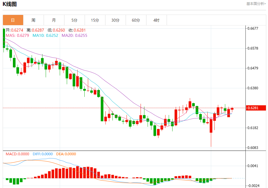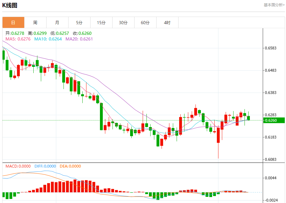 澳元兑美元今日汇率最高0.6290,最低0.6290,涨跌-0.0003,涨跌幅-0.05%。 市场基本面分析 澳洲总理阿尔巴内斯周二表示,特朗普已同意考虑豁免澳洲的钢铝关税,阿尔巴尼斯称与特朗普进行了有建设性的通话。澳元面临的外部压力加大,特别是在全球贸易环境不确定性增加和澳大利亚国内经济增长疲弱的背景下,