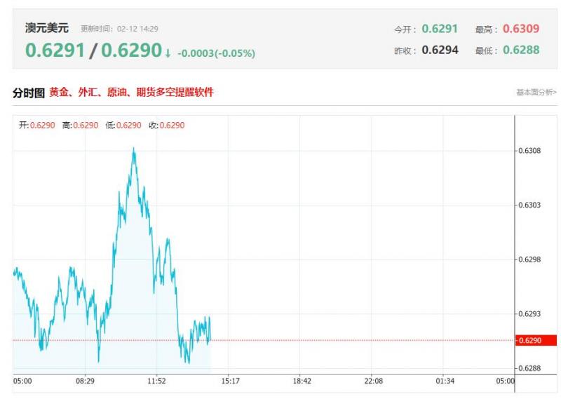 2月13日,周四欧市初盘,澳元/美元上涨,此前澳大利亚消费者通胀预期上调,2月份消费者通胀预期从之前的4.0%上调至4.6%。对潜在全球贸易战的担忧加剧,削弱了对风险敏感的澳元,因为美国可能在当天晚些时候征收对等关税。交易员正等待当天晚些时候公布的美国生产者价格指数(I)通胀。 由于美国总统唐纳德·特朗普(Don