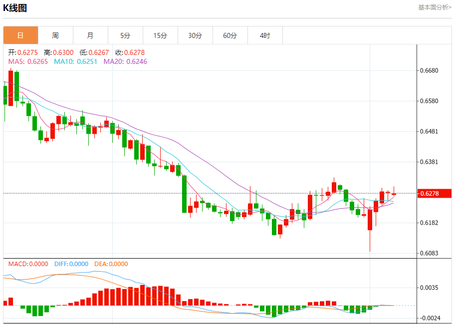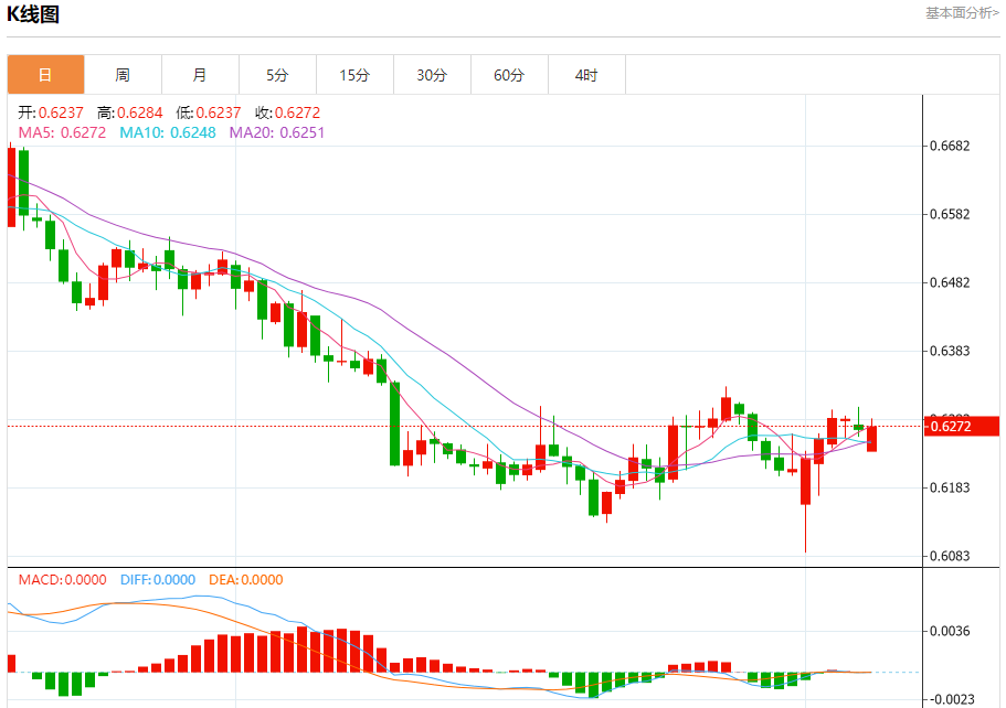 澳元兑美元今日汇率最高0.6277,最低0.6275,涨跌0.0001,涨跌幅0.01%。 市场基本面分析 澳大利亚总理安东尼·阿尔巴内塞(AnthonyAlban)表示,特朗普在通话中同意考虑将澳大利亚从钢铝关税中豁免,这一消息在一定程度上缓解了市场的部分担忧。澳洲消费者信心依旧低迷,家庭财务压力持续存在,全球环境不