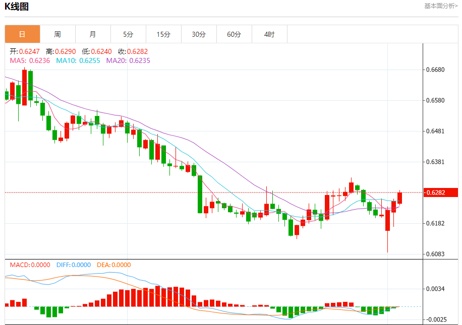 澳元兑美元今日汇率最高0.6263,最低0.6262,涨跌-0.0022,涨跌幅-0.35%。 市场基本面分析 澳洲国民银行分析师认为,至少在4月份之前、或在关税问题更加明朗之前,澳元很可能会受到关税消息的冲击。他们在报告中表示:"(未来6-12个月内)澳元的复苏,取决于美元在美联储恢复宽松政策"。 澳元兑美