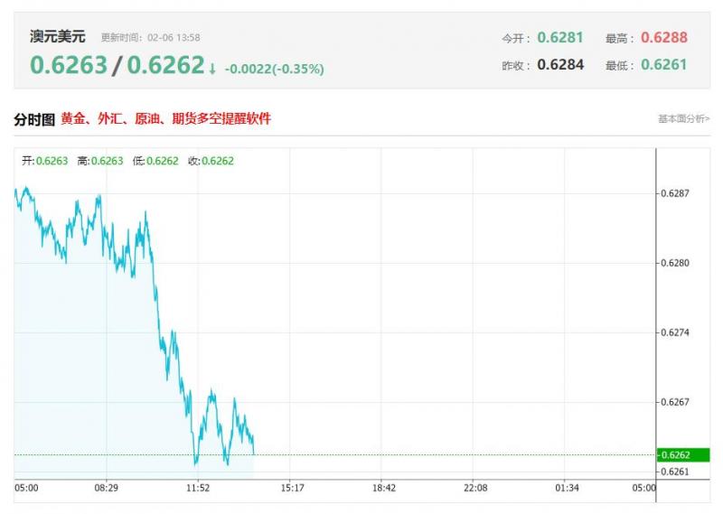 2月6日,周四欧市盘中,澳元/美元走弱至0.6260附近,因对美中贸易战紧张局势的担忧加剧以及澳大利亚贸易帐数据低于预期。周五,所有目光将集中在美国1月劳动力市场报告上,包括非农就业报告(NF)、失业率和平均时薪。 澳大利亚统计局周四发布的数据显示,澳大利亚12月贸易顺差从11月的6,792(修正自7,079)降至5,085o