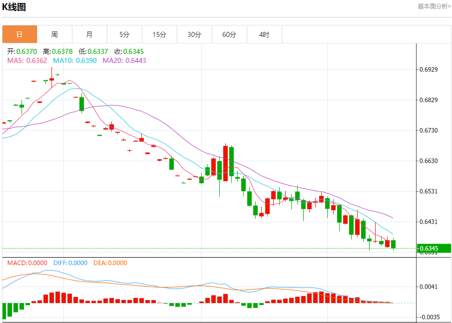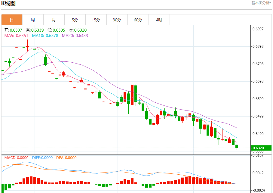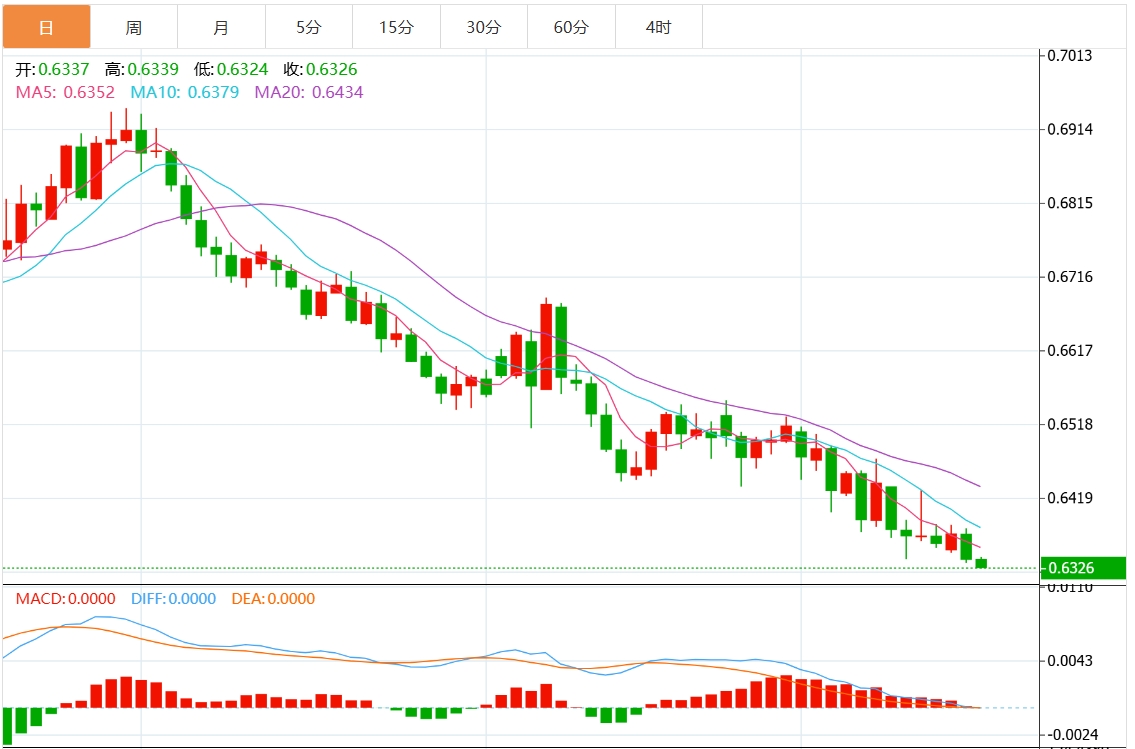 澳元兑美元今日汇率最高0.6339,最低0.6310,涨跌-0.0024,涨跌幅-0.38%。 市场基本面分析 在澳洲,近期令人失望的数据导致工党政府周三将本财年的经济增长预测下调至1.75%。与此同时,投资者对澳洲央行最早将于2月开始下调现为4.35%的指标利率更有信心心。目前预计降25个基点的可能性为70%,明年底利率料