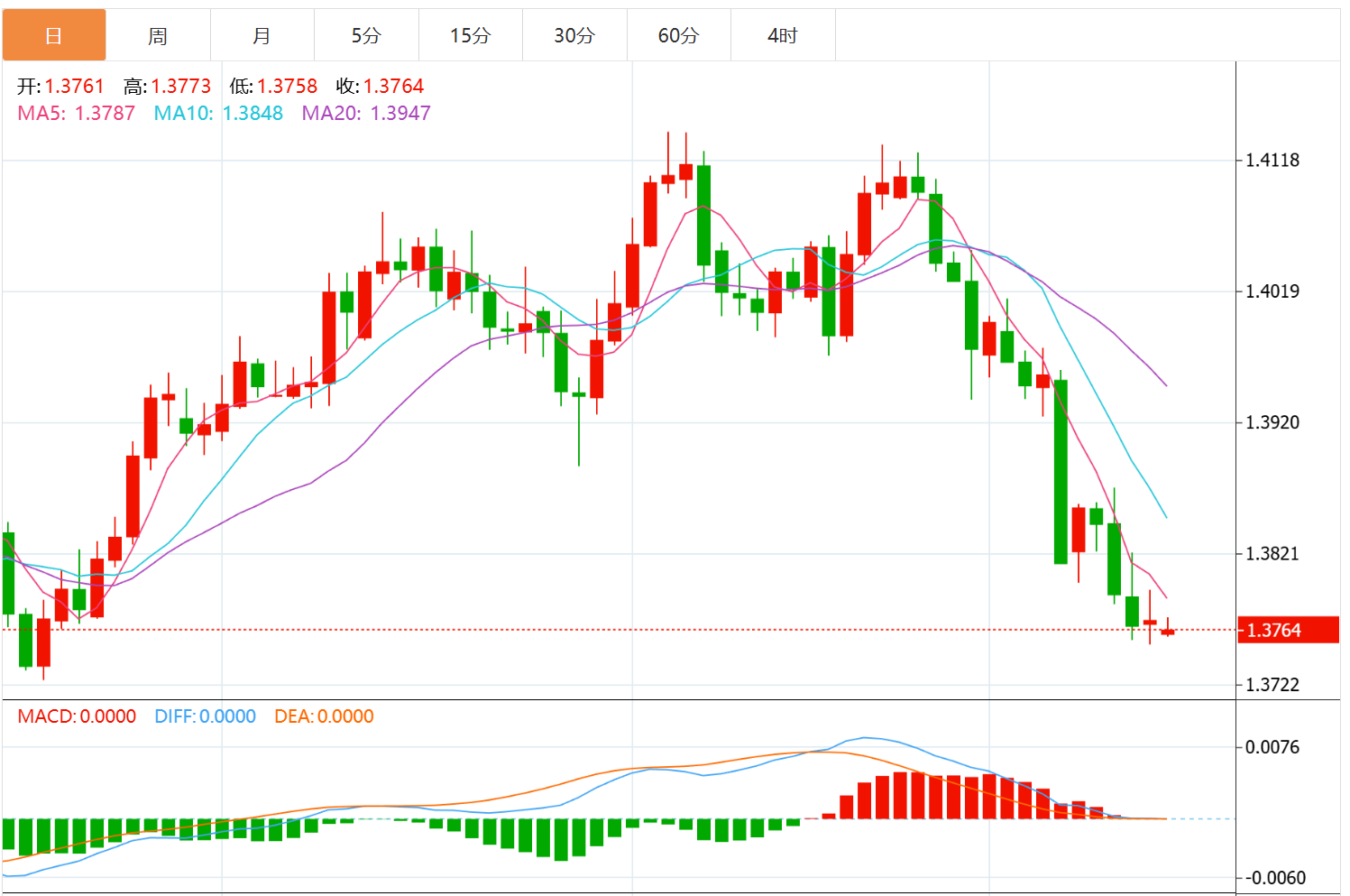 周五亚盘,美元/加元徘徊于1.3893附近,加元承压,因油价从近期高点回落。 市场基本面分析 美元受到美国最新劳动数据的支撑。上周初请失业金人数降至198,000,低于之前的207,000,远低于预期。继续申请失业金人数也降至188.4万,进一步强化了美国经济仍然强劲的叙述。这些数据强化了美联储(Fd)在货币政策上可以保持