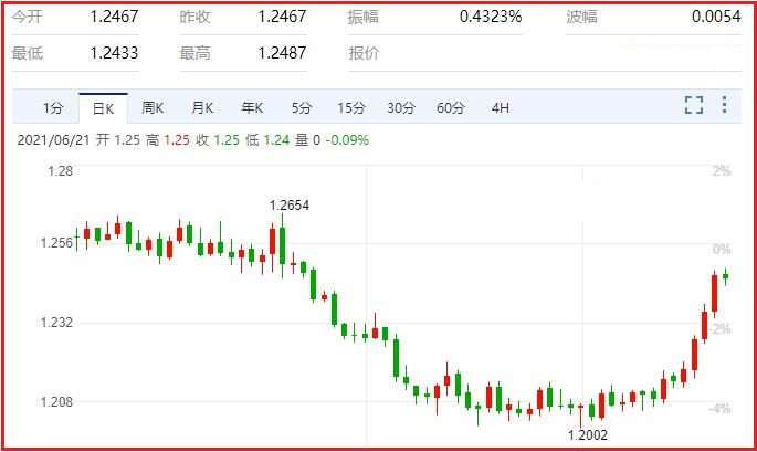 石油的需求随着2021下半年迅速复苏的预期而提升,同时提振了油价。全球最大的几家石油交易商上周二表示,他们预计油价将维持在每桶70美元以上,而需求预计将在2022年下半年回到疫情前的水平。托克(Trafigura)首席执行长Jeremy Weir表示,油价很有可能达到每桶100美元,因为在全球石油需求达到峰值之前,石油储量正在下降。汇价现报1.2452,跌幅0.04%。