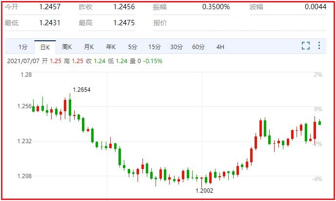 由于欧佩克+的谈判陷入危机,市场对该组织下一步的行动感到迷茫,油价昨晚暴跌。此前,沙特和阿联酋之间的激烈角力阻止了原油供应的增加,油价一度跃升至6年多来的最高水平。然而,几小时内,油价的涨势逆转,大幅下跌,因为交易员们猜测,谈判的破裂可能会让欧佩克的减产计划彻底瓦解。油价的波动表明,在人们对通胀感到担忧的情况下,该组织的内部分歧威胁着全球经济复苏的稳定,也损害了该组织作为石油市场可靠管理者的自我形象。汇价现报1.2450,跌幅0.05%。