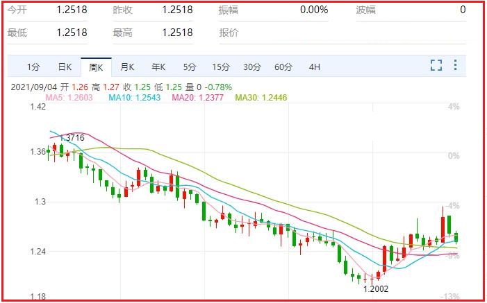 1.美元/加元货币对汇率本周跌幅0.71%,振幅1.26%,最高1.2653,最低1.2494,收于1.2528,周线收一中阴线;