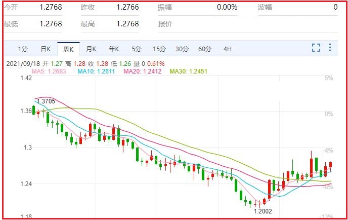 1.美元/加元货币对汇率本周涨幅0.61%,振幅1.39%,最高1.2779,最低1.2602,收于1.2771,周线收一阳线;