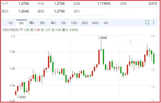 更大的可能是,美联储taper如期于明年年中结束,但随着通胀水平的回落以及劳动力市场复苏缓慢,加息条件可能延后至2023年才达到。因此。美联储隔夜的会议的风险资产偏向有利,因短期利空的释放后市场或重新关注美国经济数据以及全球经济复苏的进展,美股、原油等风险资产或迎来阶段性的“反弹修正周期”。汇价现报1.2662,跌幅0.88%。