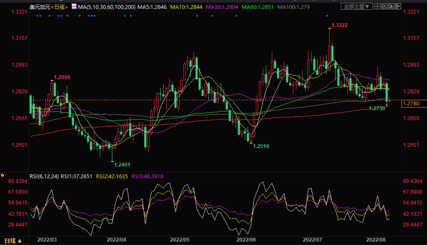前一天,美国7月消费者价格指数(CPI)同比下降8.5%,而预期为8.7%,前值为9.1%,这是6月初以来加元对跌幅最大的一天。“周三的CPI报告公布后,与美联储基准利率相关的期货交易员减少了对9月20日至21日政策会议上美联储将连续第三次加息75个基点的押注,现在认为加息50个基点的可能性更大,”路透社(Reuters)在数据发布后表示。