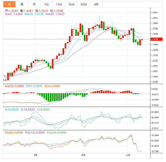 技术上,美元/加元在过去几天已经反弹。该指数已经突破了重要阻力位1.3500,这是10月27日的最低水平,该指数仍略低于50日移动均线。