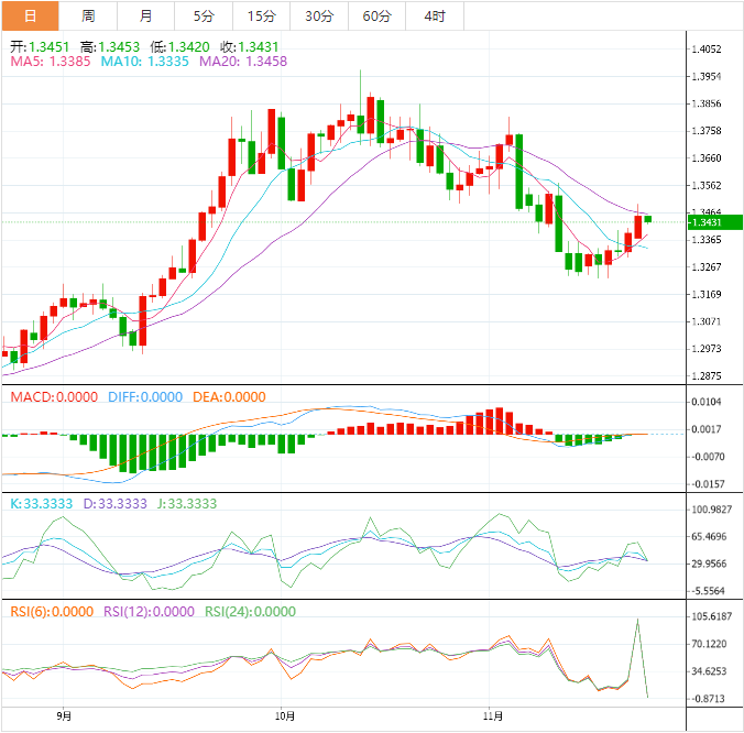 因此,最新的回调可能目标是8 - 10月上行的美元/加元的50%斐波那契回调位,截止发稿时接近1.3350,但其进一步的下行需要战胜100日移动均线1.3260,才能说服看跌者。
