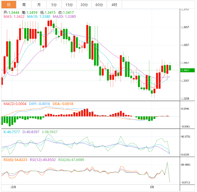 加元技术面:美元兑加元接近1.3350水平,并明显反弹,测试了第一个关键阻力位1.3450,直到现在才在该水平下方盘整,注意到随机数据显示出明显的负面信号,等待推动价格恢复看跌趋势,其目标始于1.3350,并在突破之前的水平后延伸至1.3280。因此,如果价格稳定在1.3450和1.3500水平以下,看跌趋势情景将继续有效。