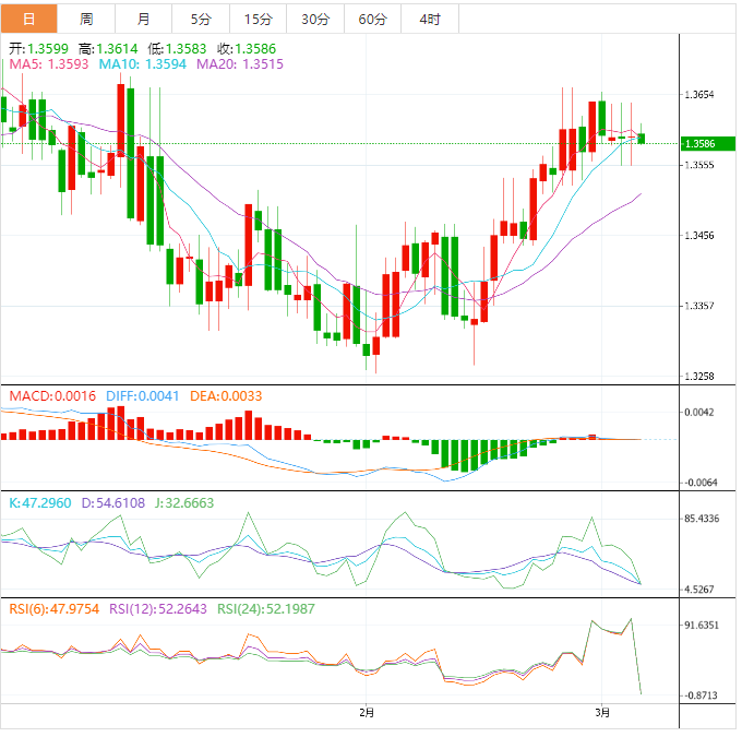 加元技术面:美元兑加元试图突破1.3630水平,但在该水平下方保持稳定,以保持日内看跌趋势的有效性,等待测试1.3500作为主要目标。随机数据开始消极重叠以支持下跌预期,突破1.3570将减轻向建议目标反弹的任务。另一方面,应该注意到,突破1.3630之后又突破1.3680将停止预期的下跌,并推动该货币对在中短期基础上实现强劲的上涨。