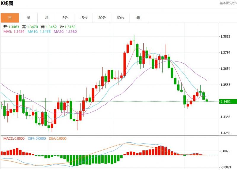 周三盘中,美元加元报1.3454,跌幅0.08%。