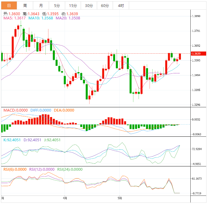 话虽如此,加元兑美元目前从3月28日起触及向下倾斜的阻力线,最晚接近1.3640。
