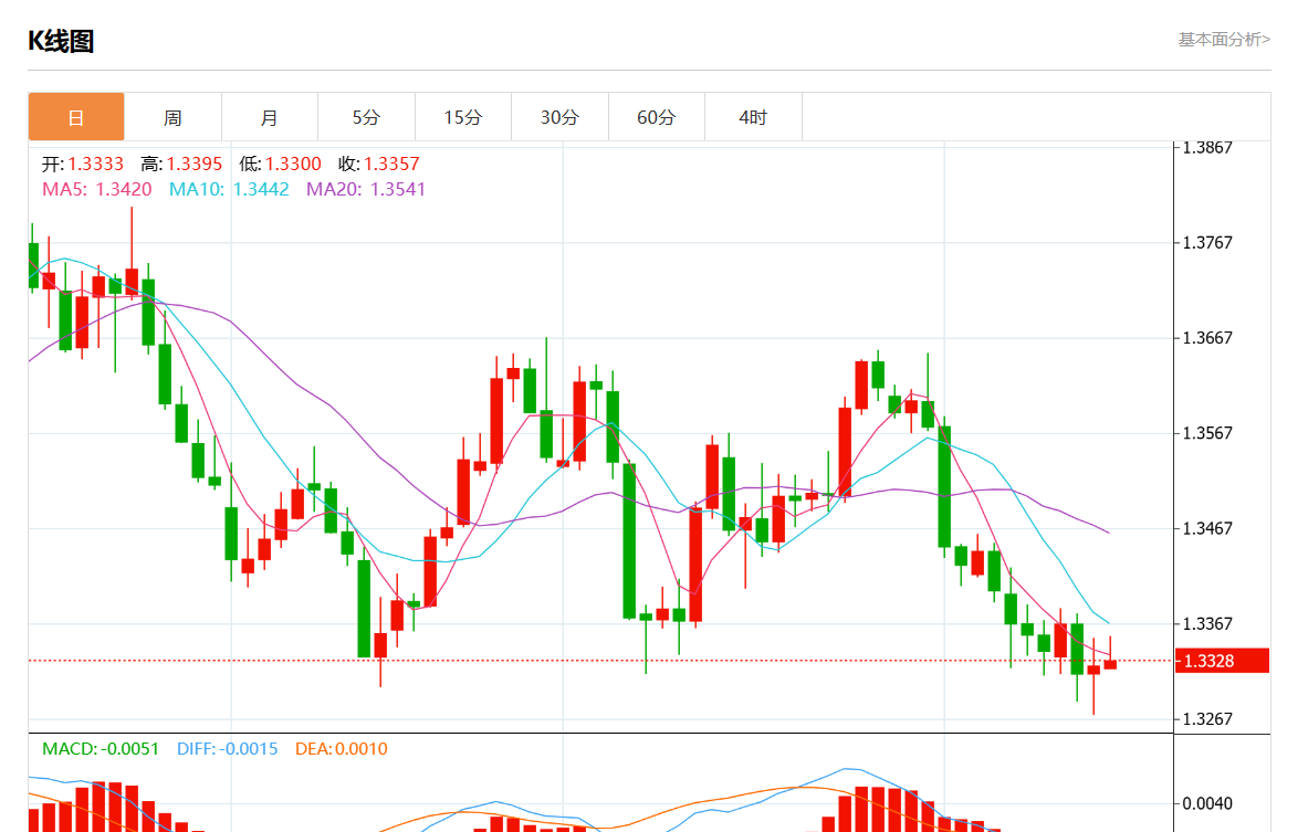 周四盘中,美元/加元最新报1.3330,日图涨0.05%