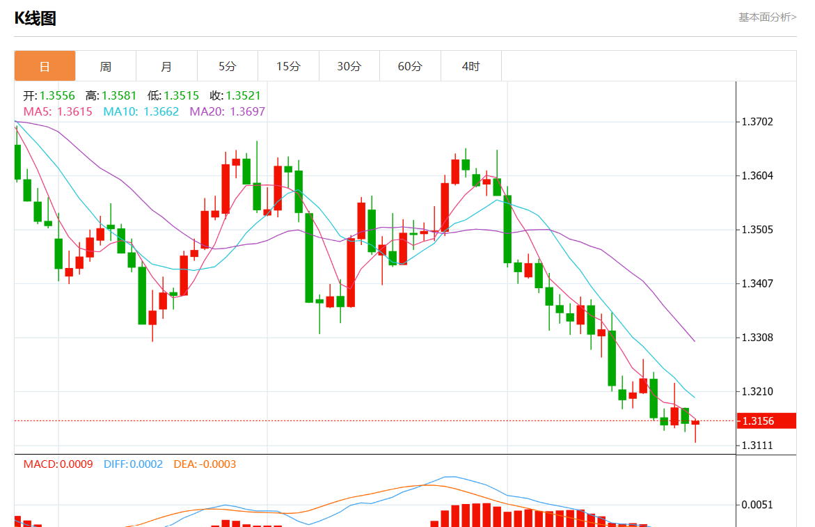 支撑位:1.3190 1.3175 1.3155
