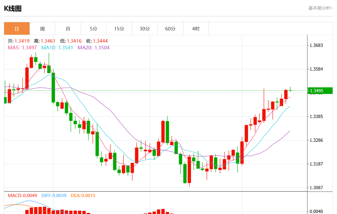 周三盘中,美元/加元报1.3497,涨幅0.01%。