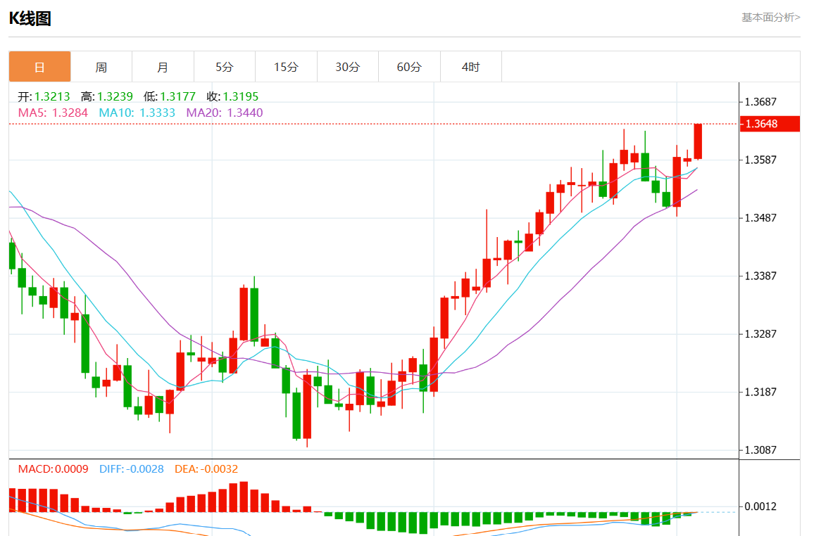 周二盘中,美元/加元报1.3649,涨幅0.4%。