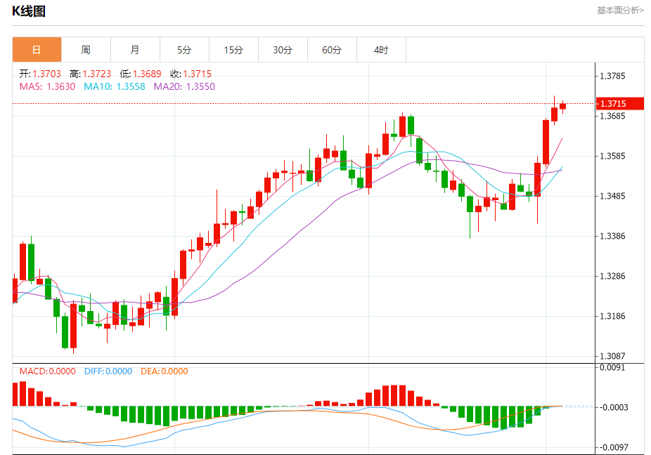 今天的预期交易区间在1.3660支撑和1.3790阻力之间。