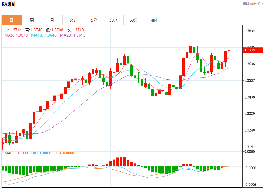 预计今天的交易区间在1.3680支撑和1.3800阻力之间。