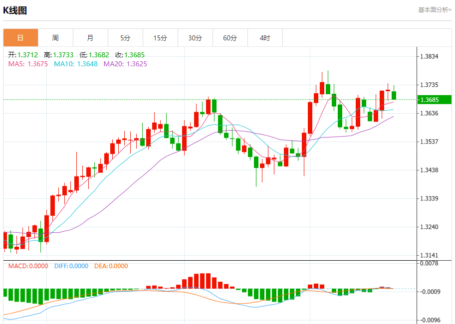 预计今天的交易区间在1.3660支撑和1.3800阻力之间。