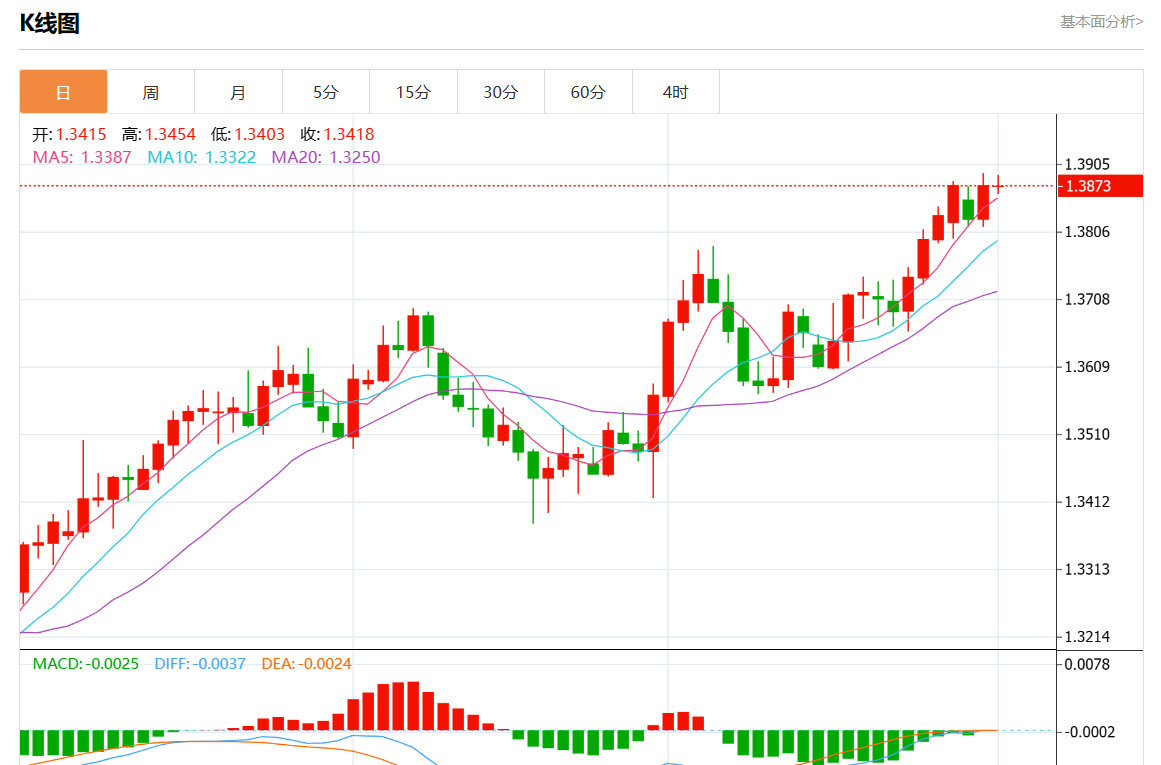 周三盘中,美元/加元报1.3870,跌幅0.03%。