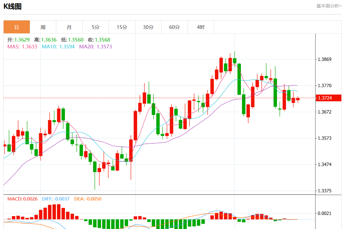 周二盘中,美元/加元报1.3722,跌幅0.01%。