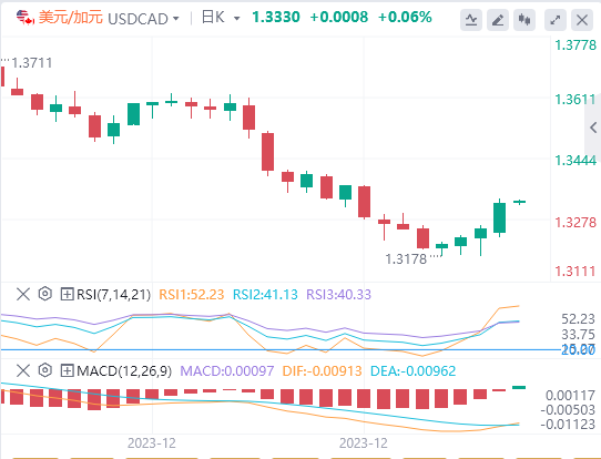市场对红海紧张局势将扰乱供应的担忧有所缓解,加上重要进口国中国的经济数据疲软,原油价格持续低迷,接近两周低点。同时加拿大央行(BOC)行长蒂夫-马克莱姆(TiffMacklem)最近发表讲话称,央行也可能在2024年某个时候开始降息,这削弱了与大宗商品挂钩的加元,并成为美元/加元货币对的“顺风”。