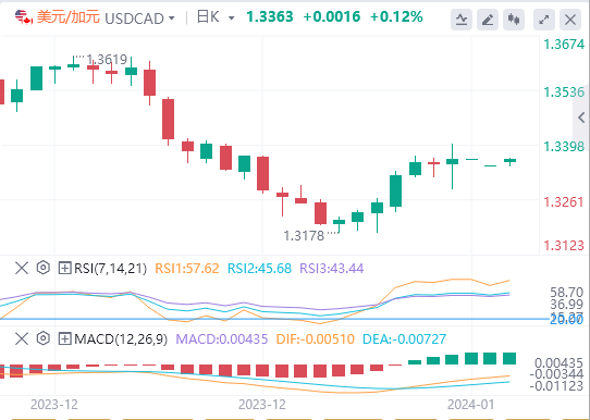 RSI技术指标运行趋势复杂,倾向于上涨。在1.3335之上,看涨,目标价位为1.3380,然后为1.3400。