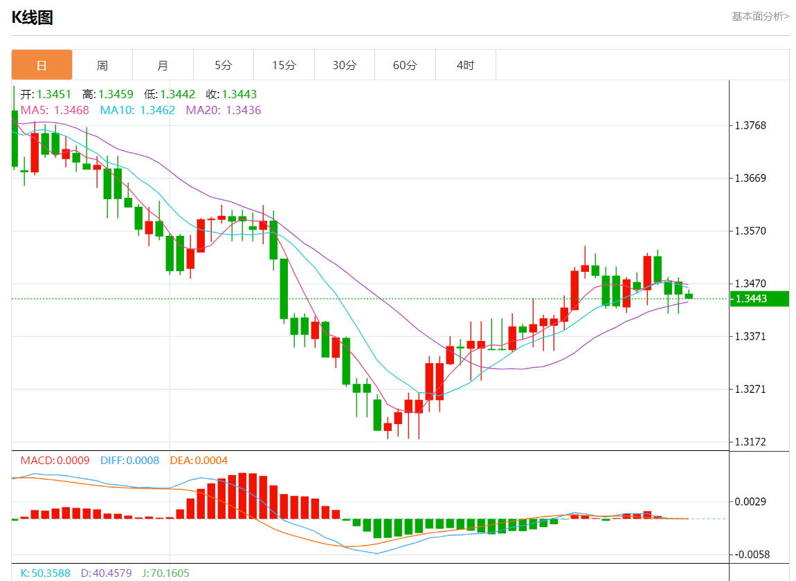 周一盘中,美元/加元报1.3443,跌幅0.06%。