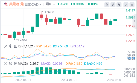 加元方面,12月GDP数据预计将以0.2%的稳定增速增长。加拿大央行(BoJ)早些时候预测,2023年最后一个季度的增长率将持平。疲软的GDP增长将加深加拿大央行(BoC)提前降息的希望。