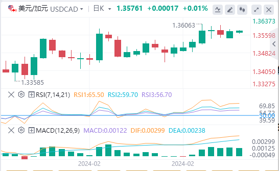 美元/加元周一小幅走高。黄金和原油市场的疲软正在打压与大宗商品挂钩的加元的需求。周三加拿大央行利率声明和利率决定之前的不确定性也推动了波动。