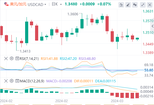 技术分析显示,美元/加元货币对的信号好坏参半。14天相对强弱指数(RSI)位于50下方,暗示看跌势头。然而,移动平均收敛背离指标(MACD)显示动能可能发生转变。