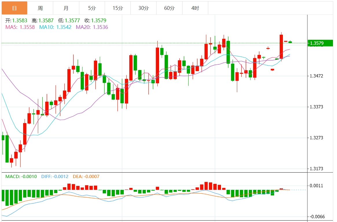 与此同时,价格目前在看涨的 20 日均线上方发展,该日均线超出了较长的均线,均低于当前水平。突破上述阻力位应该有利于向1.3700延伸,而一旦跌破1.3550,近期风险将偏向下行,然后有可能测试1.3500关口。