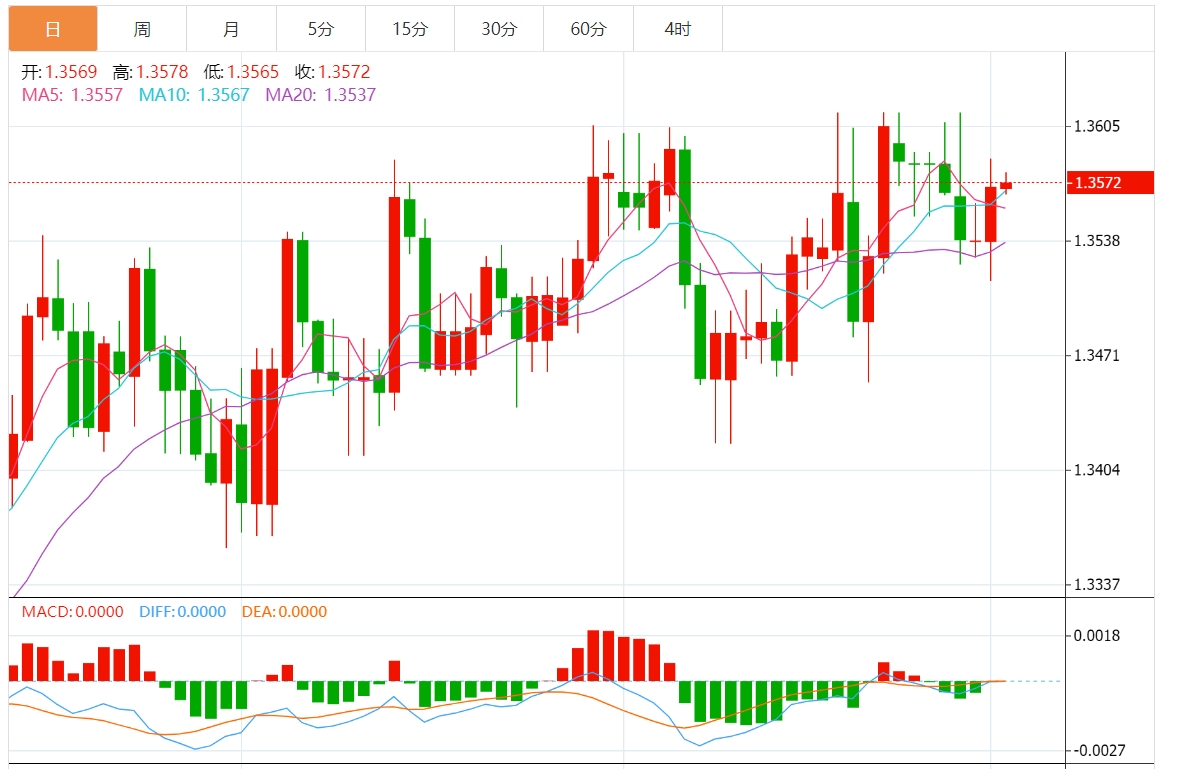 该货币对继续在略微看涨的通道内交易。从上周低点反弹已突破阻力位1.3565,这让买家希望将涨幅扩大至1.3615和通道顶部1.3632。支撑位在1.3520和1.3470。